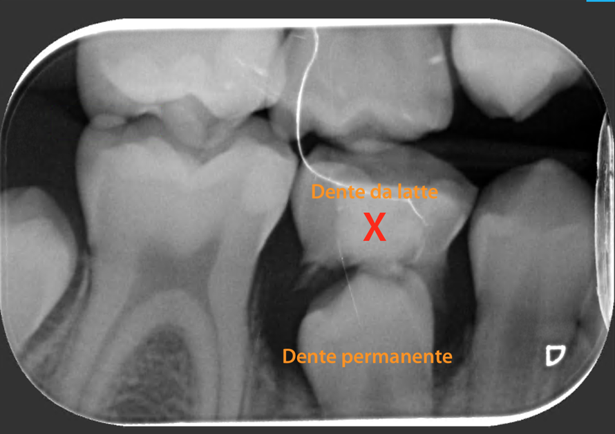 dente permanente è pronto a crescere quindi con un pò di anestesia si fa cadere il dente da latte e tutto è risolto.