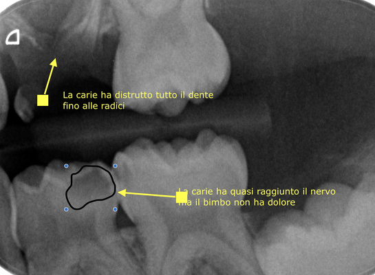 Il dente da latte, a differenza del dente permanente, ha però uno smalto molto sottile e un nervo molto grande, motivo per cui le carie tendono a svilupparsi velocemente e a compromettere il